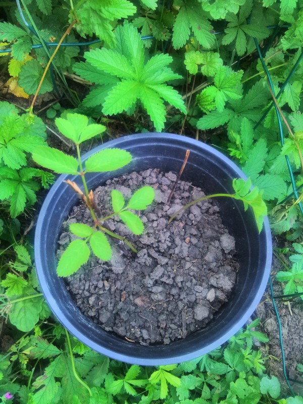 - Pousses d'aubépine trouvées dans le parc des chevaux. L'un a reprit, l'autre est en mauvais état. On verra bien !