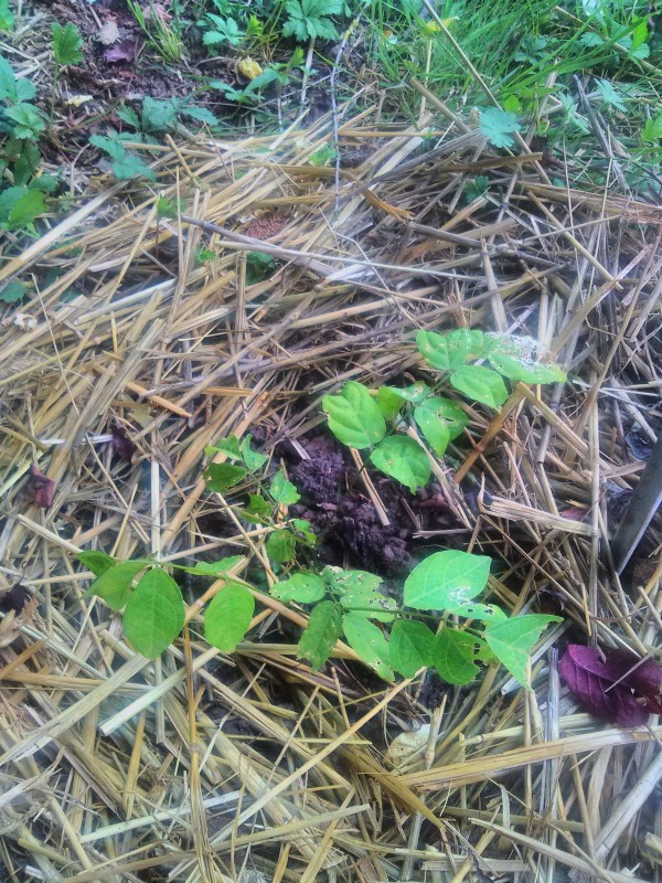 - Groseillier : UN VRAI SURVIVOR. Maintenant fois écrasé par les voisins (faisait quand même 6cm de haut), enterré sous 40cm de terre, il m'a refait une pousse !!! Cette fois il est protégé et paillé.