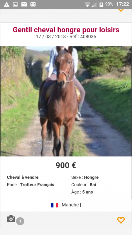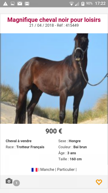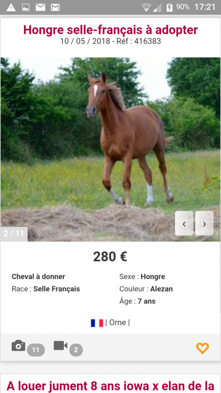 Au cas ou, DSA, alezan, 4 ans non débourré car toujours en croissance (fera autour de 160 cm). Mais bien manipulé, gentil, à jour de tout, monte bien en van, se baigne, ...