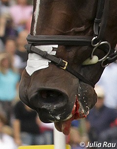 Ben là pareils le cheval s'est mordu la langue ça ne serait pas arrivé avec une muserolle croisée...