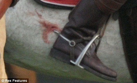 Le cheval est à bout psychologiquement, trempé de sueur et en réel panique qu'il ne sait même plus quoi faire et tente de fuir comme il peut. Et cette "cavalière" qui s'acharne et le tabasse avec vraiment une envie de se venger, clairement...