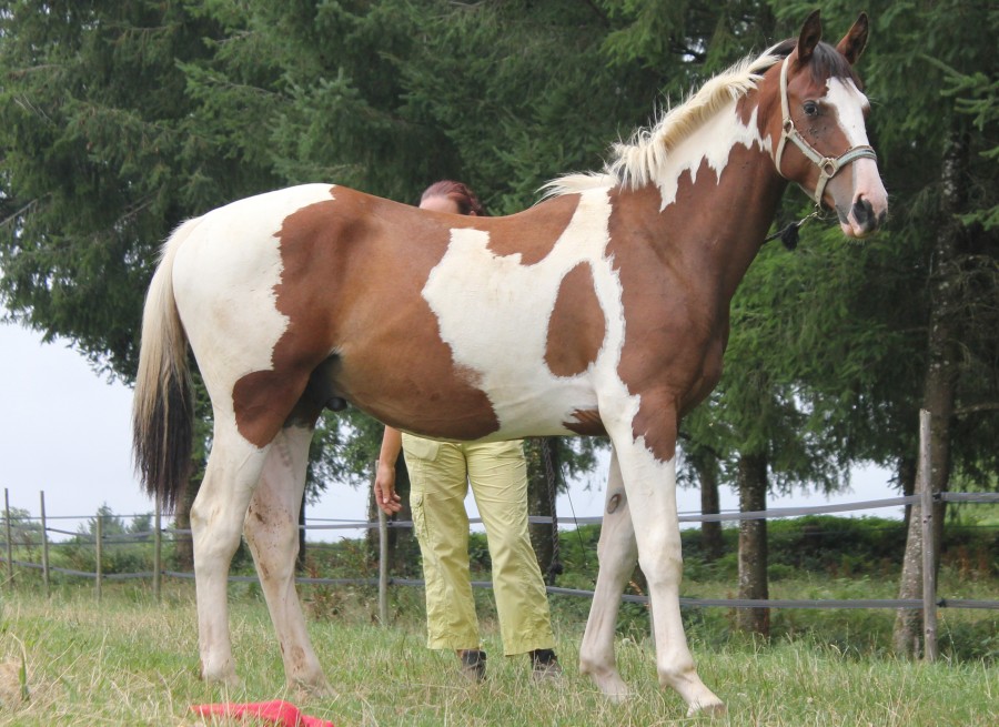 Bonjour tout le monde , quelques petites news d'Ima'djinn , 13 mois et toujours en crise d'ado, je vais bientôt récuperer Lilou et la mettre avec Ima et Wolga, comme wolga passe tout à la petite j'espere que la tati au caractère bien affirmé remettra un peu la miss a sa place elle en a bien besoin . Frayeur la semaine derniere en retrouvant la poulichette dans le parc a vaches du voisin, heureusement elle a sauté la cloture ( 1m30/40 selon les endroits)et non traversé , plus de peur que de mal.