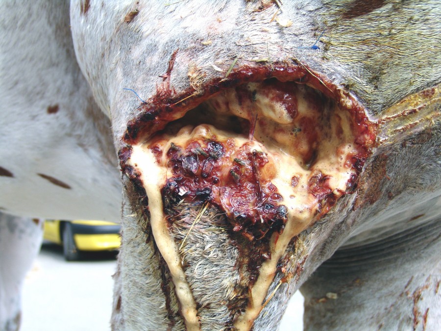 Oh il y aurait d'autres choix dans le traitement d'une telle plaie fraîche (-de 6 heures), suture avec point de soutien et la pose d'un drain.
