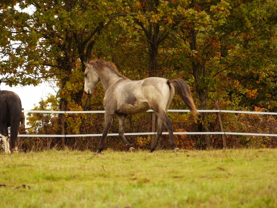 Le côté moins sympa : il marche un peu sur des oeufs... Le précédent maréchal l'a fait trop court, et là avec la terre argileuse qui fait remonter tous les cailloux du terrain, ça se voit qu'il doit prendre le temps de poser ses pieds. Tout le long du chemin pour aller au bâtiment il y a énormément de cailloux donc c'est vraiment pas simple pour lui