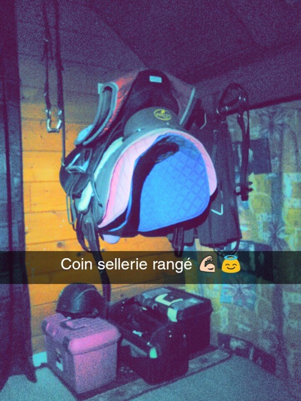 Après ça j'ai rempaillé, servi le foin dans les abris, j'ai ratissé tout le paddock et comme c'est gelé j'ai passé un coup de balai-brosse. Ça fait dix fois plus propre !