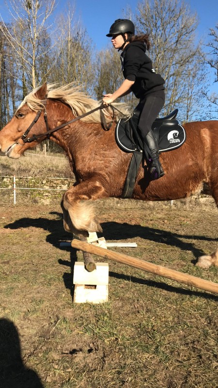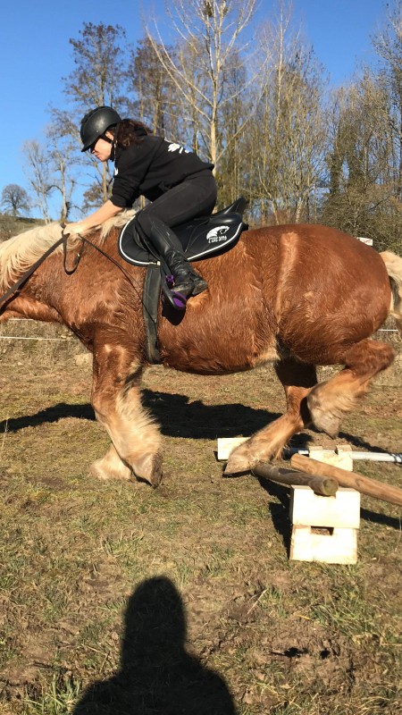 Sur la fin de la séance j’ai réussi (avec les conseils de la copine du mercredi !), à l’avoir plus actif et engageant davantage les postérieurs. Et surtout il commençait à comprendre pour étendre son encolure ! Il va falloir travailler beaucoup sur la décontraction et l’impulsion !