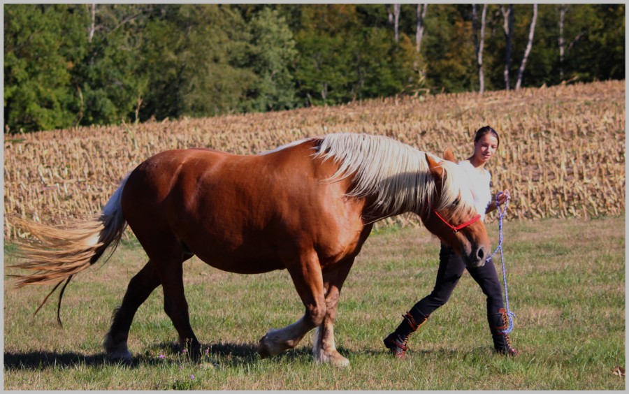 Sinon j’ai voulu le lâcher en carrière (une fois dessellé), il m’a regardé, à regardé le copain qui pétait en l’air à l’autre bout de la carrière, puis m’a regardé et n’a pas bougé