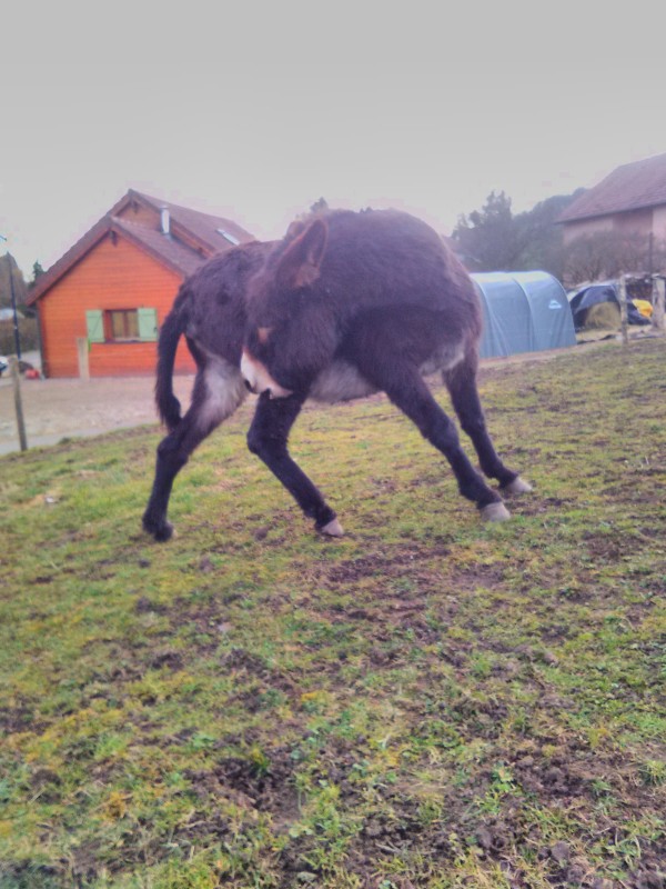 Pour le paddock pas le choix, l'eau s'imprègne et fait remonter pas mal de flotte à la surface, rendant une bonne partie bien boueuse. Donc on a passé (J'AI passé) une matinée, au rateau et à la pelle, à remettre 1m cube de remblais. Plus qu'à bien tasser mais ça, ce seront les juments qui s'en occuperont !