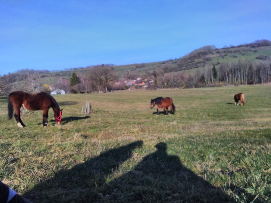 Automne 2018 donc, on trouve de quoi abriter les chevaux l'hiver. En 3 semaines, souvenez-vous, on a creusé 48m carré à la pelleteuse, on a mis pas moins de 3 bennes de remblais/tout-venant, on a planté des piquets d'acacia, monté les abris, tendu des fils...