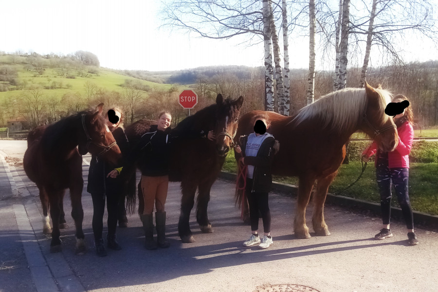 Et aujourd'hui j'ai deux jeunes et leur belle mère qui sont venues s'occuper des juments, les brosser et les balader. Ça s'est super bien passé. On a fait 3,5 km, les juments sont propres et reposées. Vraiment genialissimes...!!