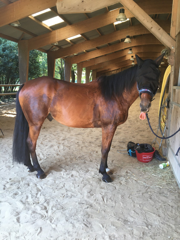 Bon des nouvelles un peu plus positives... je suis allée aux écuries ce matin, puisque je suis des cours en visio cette semaine et que je suis en pause de 10h à 15h30. En plus, vu la chaleur, je me suis dit que ce serait sûrement mieux d`y aller à 10h qu`à 18h
