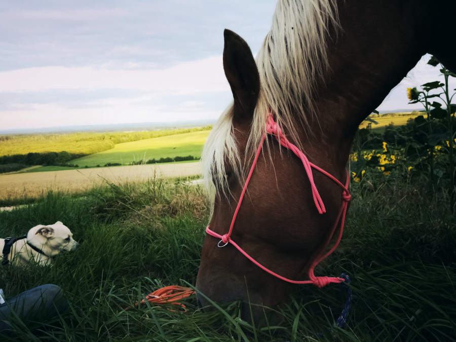 On choppe le bois, encore un beau dénivelé qui achèvera les humains plus que les animaux. On poursuit gentiment mais Teddy préfère couper par le champ. Moi je continue tout droit, descend la côte de la mort qui tue où Tartine va trébucher deux fois et on remonte par le chemin. Là on descend la "route" qui passe devant le chalet, Tartine se frotte aux noyers. Arrêt à la maison pour que les humains s'hydratent