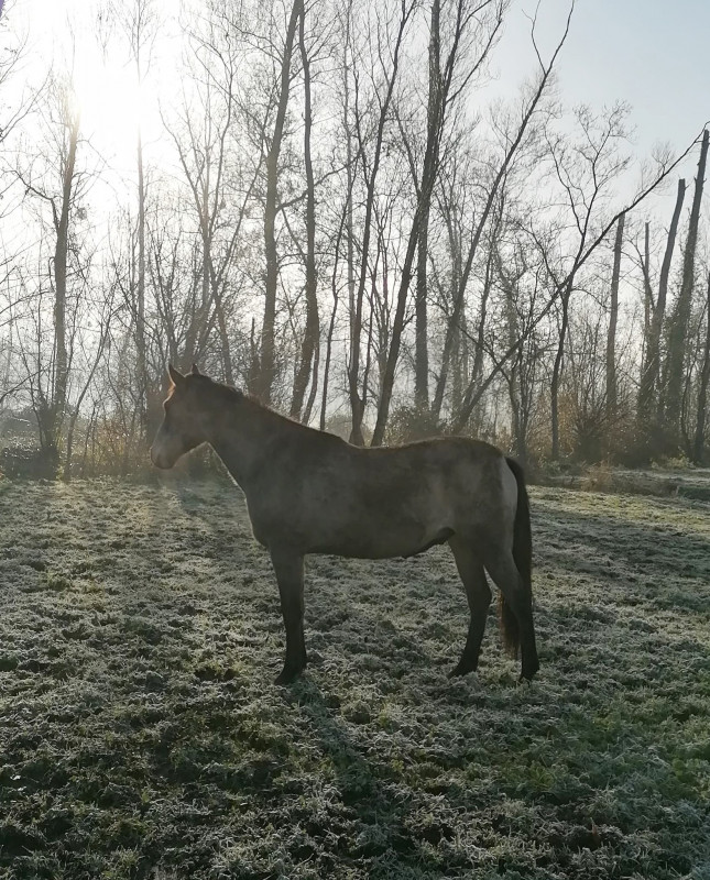 Et dans la soirée, la pareuse est passée. Bonnes nouvelles aussi de ce côté là, ses légers défauts d'appuis ont bien évolués et auront bientôt disparus si on continue dans cette voie. Par contre, elle m'a cassé le licol tout neuf pendant le parage