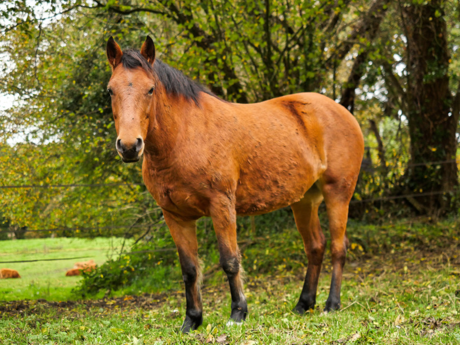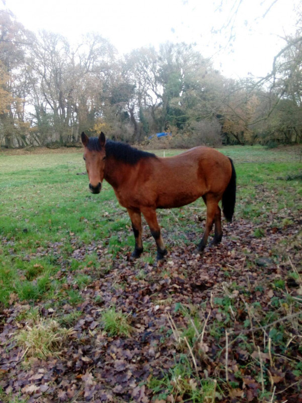 - Acheté en janvier, à 3 ans et demi, non débourré (mais déjà un jeune cheval "pratique" : sûr de lui, tient à l'attache, marche en main, monte en van...).