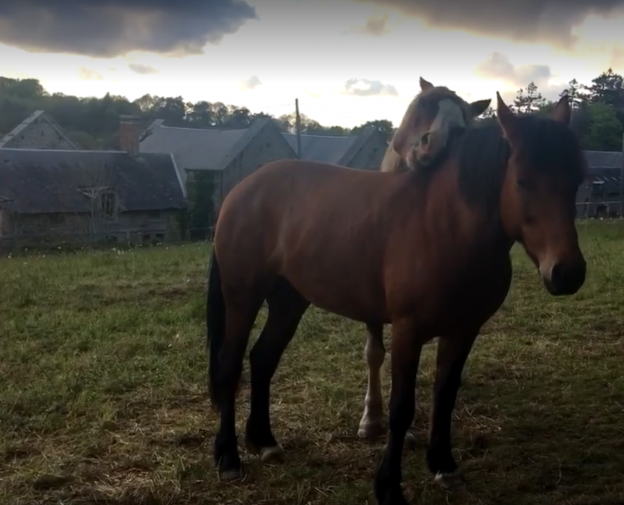 Arrivée au box : "Ca va, y a du foin ici aussi, tout va bien"