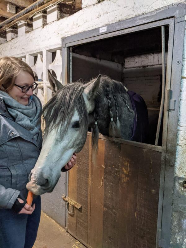 Dernier câlin avant de rentrer et de le laisser pour la nuit ("ah j'ai encore une carotte, vient on va réussir à faire une photo de sa tête du coup")