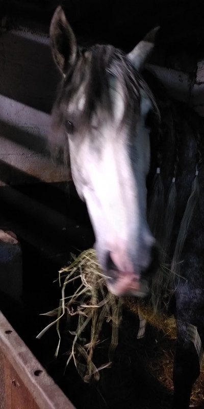 Ce matin, 10h, visite d'achat ! Bon je vais pas vous faire l'énorme résumé comme pour mes derniers messages parce que là je suis vidée mais en même temps, je suis trop excitée pour dormir XD. Bref, la visite s'est bien passée, il y a quelques remarques mais la véto l'a totalement validé quand même (les visites parfaites ça n'existe pas, même si on préférerait tous évidemment). Cheval pas tracassé pour un sou, toujours aussi gentil à la manipulation, pour être totalement sur on a refait quelques radios quand même (dont le dos, les seules qu'il n'avait pas). Du coup... ben on a signé ! Et transport prévu pour le soir même !