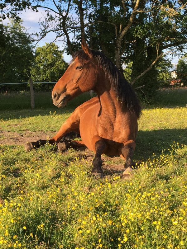 Et une autre de jeudi soir, après une balade assez intense où on a pas mal galopé, Vainqueur a eu bien chaud et s'est accordé une bonne roulade... l'occasion de prendre la pose !