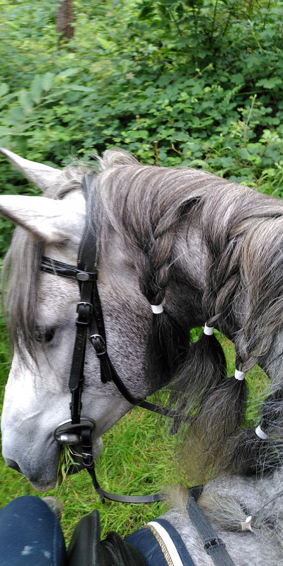 Je suis perplexe pour un truc avec Pastor. Comme vous le savez, j'ai recommencé à monter depuis environ deux semaines maintenant. Ca se passe bien, on bidouille un peu pour trouver la communication, mais je le prends vraiment cool, pas plus de 35mn, pas de galop, je cherche pas la difficulté... J'ai aussi commencé à m'intéresser au training en renforcement positif (je suis les cours de Hannah Weston sur "Connection Training", j'y reviendrai sans doute dans ce topic après avoir avancé plus, mais j'aime beaucoup le format entre les séances commentées et la théorie sur le fonctionnement du cheval).