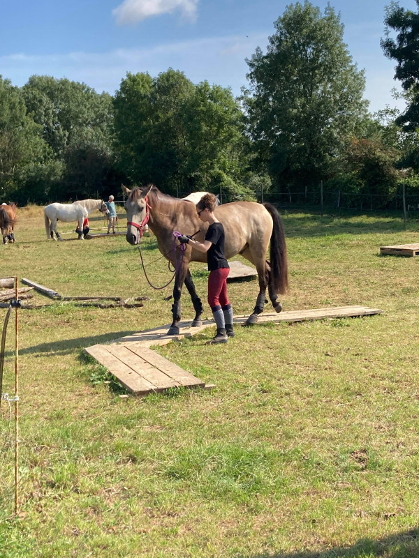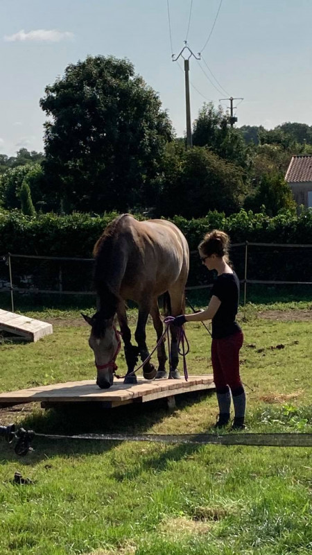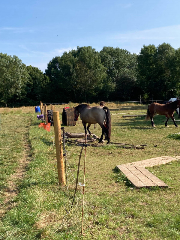 La gérante a trouvé qu'il "en voulait", je pense que son côté pépère ne laisse pas présager tant d'énergie dans les allures ahah ! Et pas du tout gêné par ses pieds alors que c'était un des seuls chevaux pieds nus
