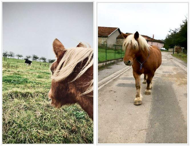 En fait comme j'ai plus de temps pour moi, j'ai décidé de mettre en place une routine, le matin avec la jument, c'est à dire sortir faire la boucle du village. Ca fait environ 1,5km, je peux la faire par tous les temps et à toute période de l'année puisque pas gênée par les chasseurs, route éclairée, calme. Et l'idée ce serait non seulement de la remettre en route doucement mais surtout de la réhabituer à se séparer des potes.