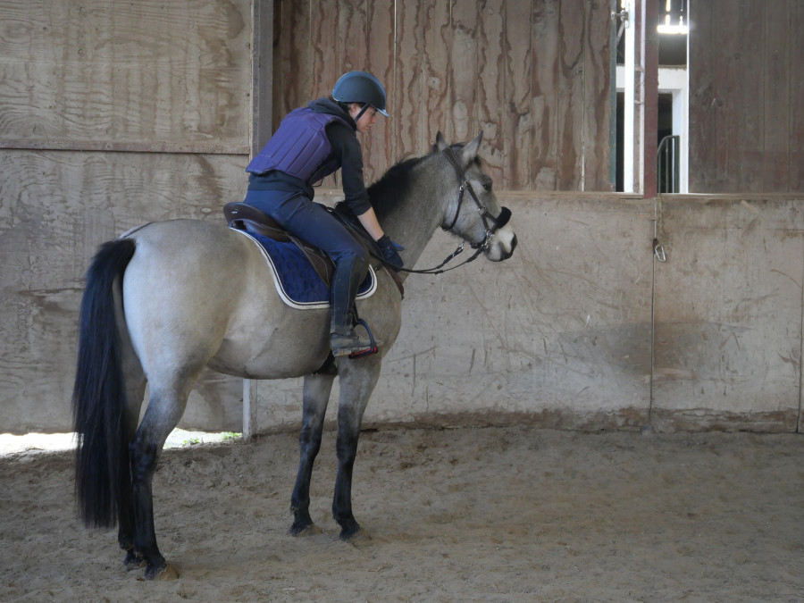 Pas de galop cette fois-ci, toujours dans l'idée de déconstruire mes schémas de séance. On a ensuite été faire notre traditionnel tour autour des écuries. La séance a du durer 30 minutes, hors tour des écuries. Contente de Vainqueur qui s'est bien mis dans le travail malgré le vent et les chevaux qui faisaient les zouaves dans les paddocks à côté. Il est bien mieux dans le contact et l'attitude, malgré le rythme très calme de travail :D