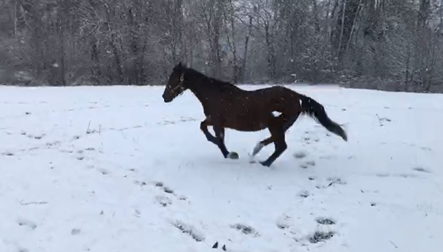 Hier c'était sortie au paddock, elle nous a fait des galops, des ruades, des glissades, j'étais comme ça