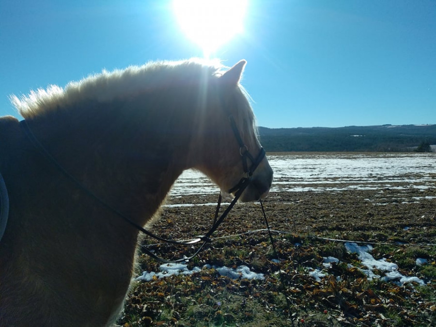 Pour Tartine c'était au parc, en licol corde, on a fait du rodéo, je suis tombée amoureuse de la bestiole et voilà. 10 minutes de pas, de trot, de galop, quelques cercles et c'était tout. Mais sous un magnifique soleil !