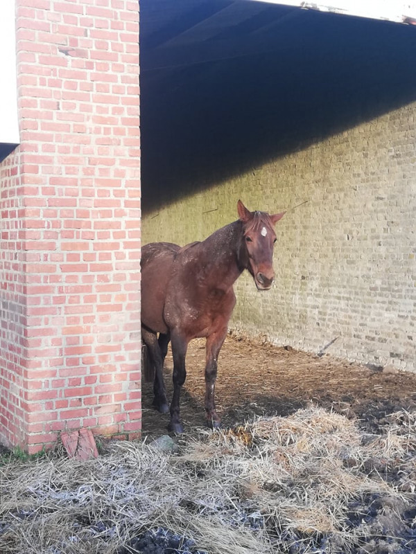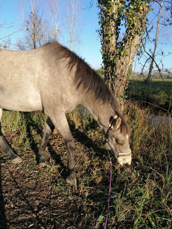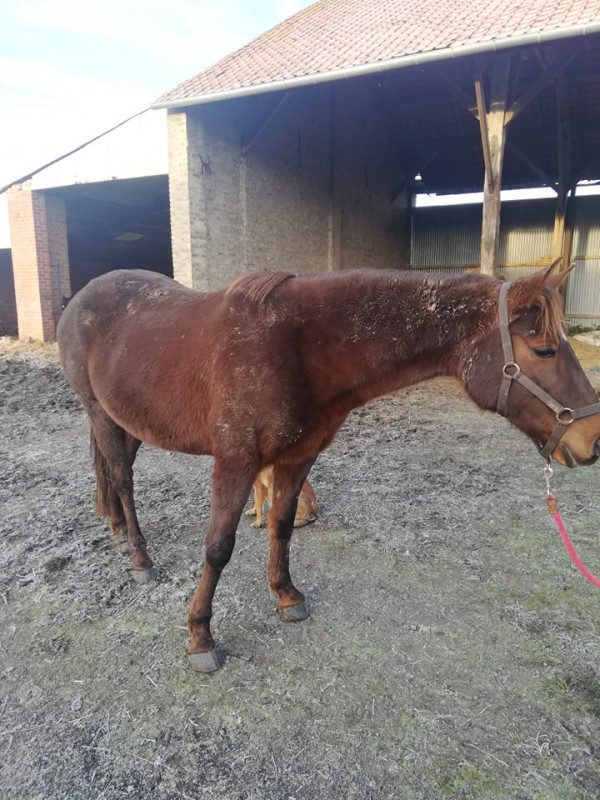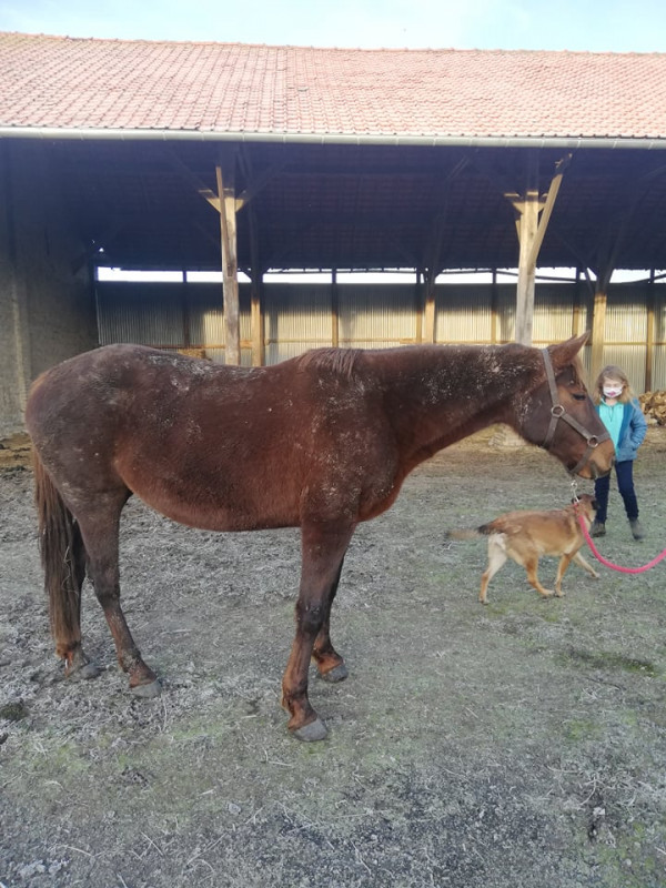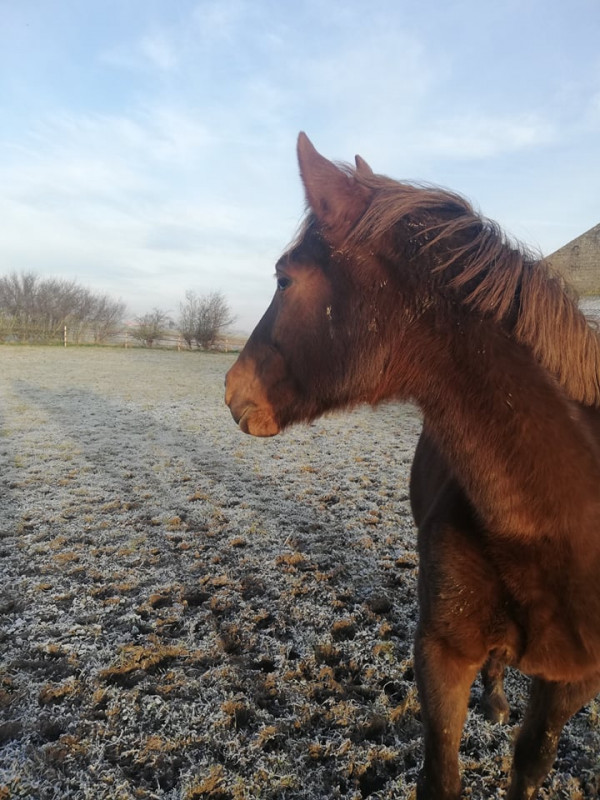 Je suis re-montée aujourd'hui, je n'avais pas prévu ça. Un ami est venu avec moi et il était déçu que je ne monte pas alors j'ai mis la selle, un peu de longe... RAS, concentré mais le froid lui pique toujours les fesses.