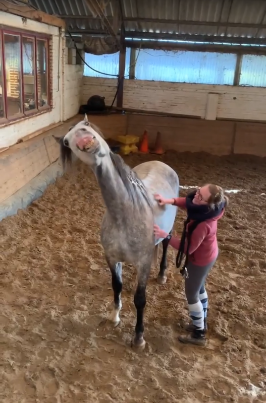 Je n'ai rien fait d'autre que paddock et pansage les premiers jours, puis je lui ai fait découvrir les alentours immédiats avec de petites balades en main, une fois que j'ai été +/- sûre qu'il était à l'écoute de l'humain à pieds. Découverte des installations avec deux petites longes aussi. Je l'ai monté pour la première fois une semaine après son arrivée.