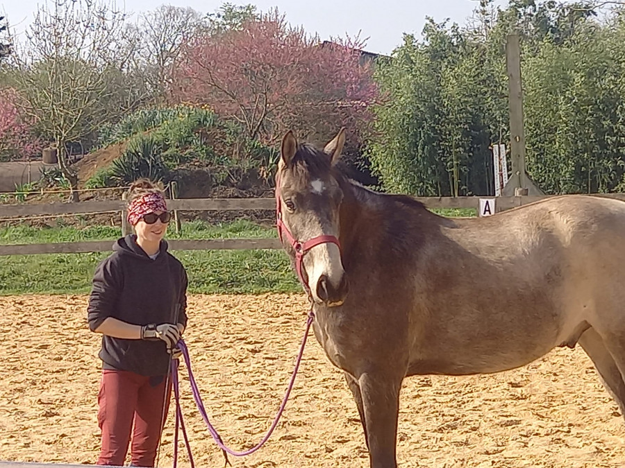 Bon déjà le premier jour quand je l'ai sorti du pré on a du revoir la marche en main parce que maintenant il faut y aller tout doucement tu vois bien que j'ai une jambe bancale kiki DOUCEMENT *cavalière écartelée* *poney le nez dans l'herbe* ok, on reprend les bases de quand il avait 1,5 ans.