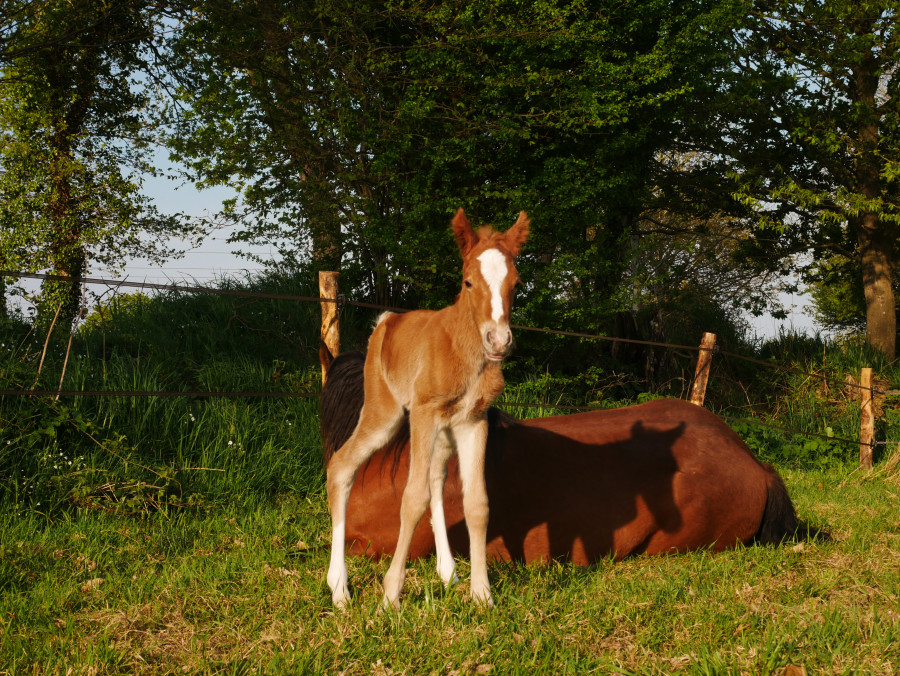 Je crois qu'on va partir en carrière... Bah non, directe dehors en extérieur. Il est suiveur, gentil mais suiveur, refuse catégoriquement de passer devant la comtoise... Bon. Mais je sens qu'il a du sang, il y a du moteur. Mais alors une feuille qui touche le sol et ça y est, ça démarre, ça sert les fesses et ça saute en l'air.