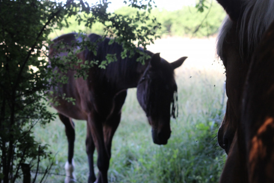 Quelques sorties avec les 3 juments, surtout pour brouter et regarder les mouches voler