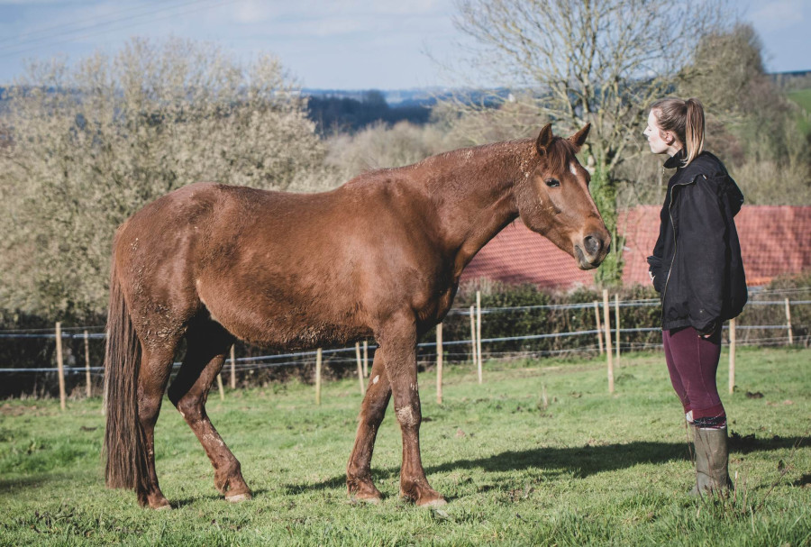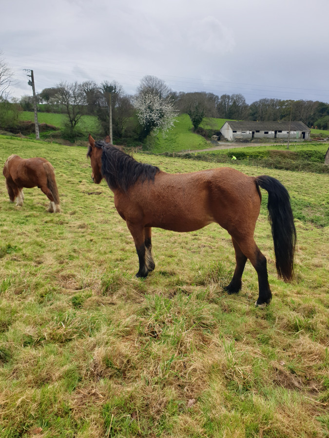 Belle est reproposée à l'adoption, depuis quelques mois déjà. Ca me brise le cœur mais je ne vois pas d'autres solutions. Depuis son débourrage elle charge, latte et mord Tianna constamment, je ne suis pas en sécurité dans la pâture, et la création des pistes n'a rien arrangé car Tianna se retrouve souvent coincée. Avec l'humain je n'ai rien à redire, elle est douce, câline, part en balade seule en side pull, n'est pas regardante... Mais Tianna a assez morflé dans la vie pour pas se faire harceler jusqu'à la fin de ses jours à la maison.