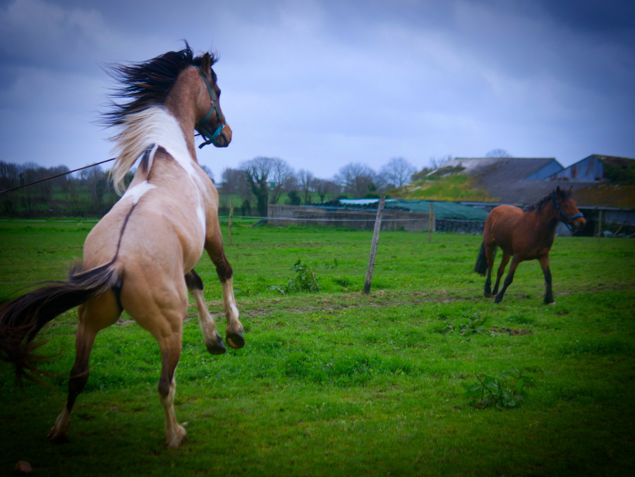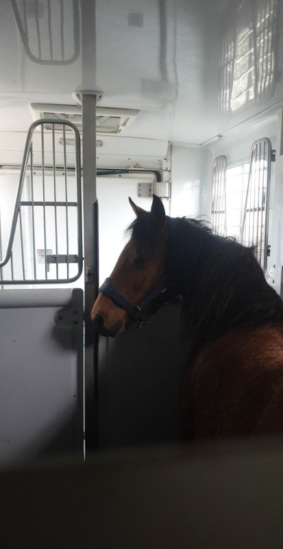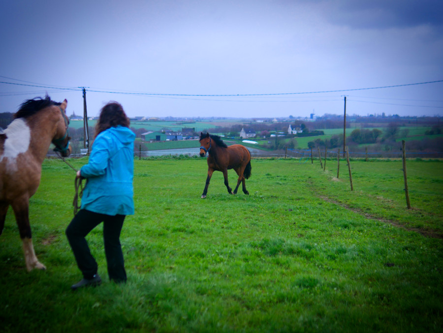 En ce qui concerne la suite du périple de Bella, on est bien arrivées après 1h de route et de sacrées rafales de vent. Elle a découvert son paddock et ses nouveaux voisins, elle s'est vite sentie bien et franchement j'étais étonnée de la voir si posée.