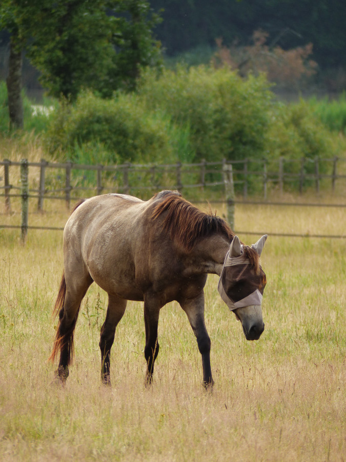 Les insectes sont TRES agaçants ici. Fly mask et anti insecte en spray indispensable. Et pourtant, je fais partie de ces gens qui laissait le cheval sans masque au pré pour qu'il aille se protéger des mouches et mange moins. Sauf que là ils sont vraiment embêtés très fort. Moucherons et satanés taons XXL qui attaquent en escouade, les vilains.