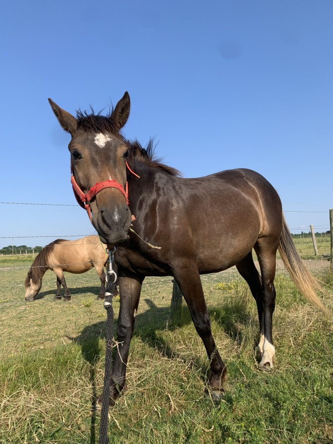 De mon côté j'y suis allée mardi et aujourd'hui. Le but était de le sortir gratter, brouter et regarder jusqu'où il accepte de visiter son environnement. Donc en gros on a longé le pré jusqu'à l'étang le premier jour (avec les juments collées derrière la clôture) et j'ai fais demi tour avant de trouver qu'il ne sentait plus suffisamment en confiance dans son environnement.