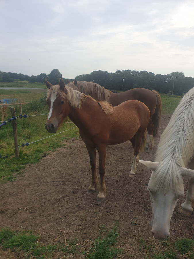 Arrivé à la pension, nous l'avons d'abord mis dans un pré adjacent aux copines qui sont venues voir immédiatement ce qu'il se passait.