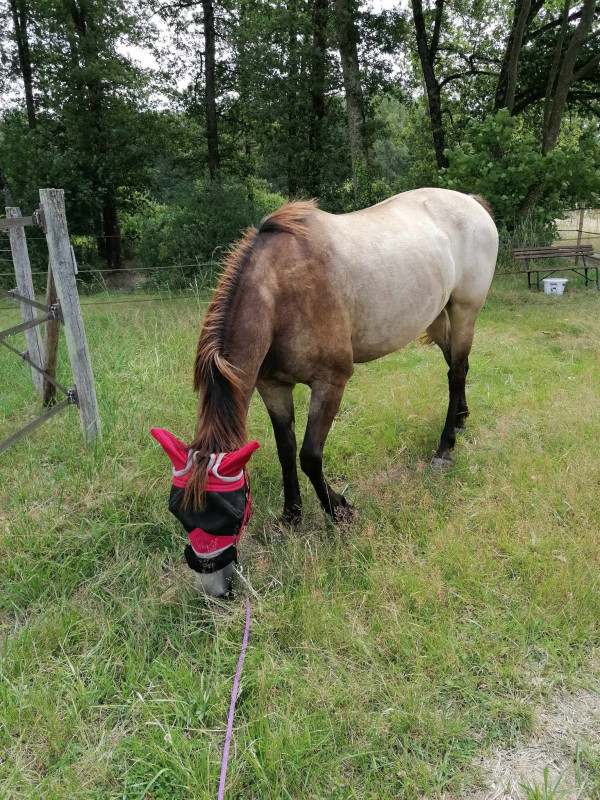 Le lendemain où j'ai appris que Tianna n'attendait pas de poulain, je trainais sur insta quand j'ai vu un partage de post en story. Je ne connaissais pas la personne à l'origine du post, mais je vois une photo de ce beau bébé avec écrit "à confier". Dans la description je vois qu'elle cherche quelqu'un pour qu'il fasse principalement du travail à pieds, tenir compagnie etc... Je me dis que je ne suis pas tombée sur ce post par hasard !! La fille a un gros compte mais je me dis que ça me coûte rien de lui envoyer un message en lui expliquant ma situation, que Tianna est seule, que j'ai un PP aménagé à la maison, que je suis plutôt tournée TAP etc.. Au final elle me recontacte, on s'appelle et on se met d'accord pour que je vienne le voir.
