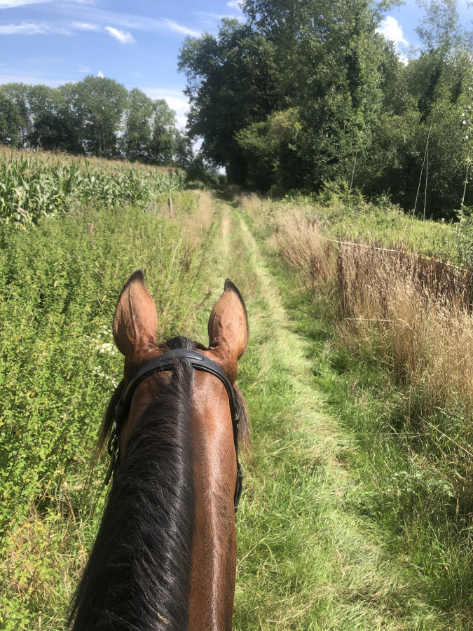 (spoiler, j`ai quand même pris la pluie lol). Notre dernière séance de plat remontait à plusieurs mois (mars peut-être ?), je montais donc exclusivement en side depuis, autant dire que je ne m`attendais pas a grand chose pour cette séance.. et il m`a impressionnée ! On a juste fait une petite détente au pas et trot, mais il a été hyper concentré et volontaire. Trop contente de lui et trop hâte de reprendre les cours à la fin du mois !!