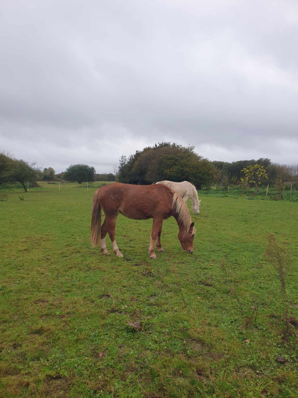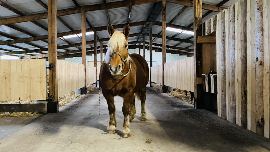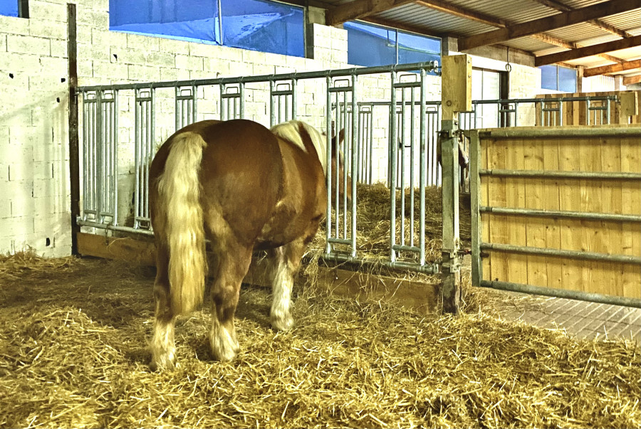 - Stabulation (ouverte sur terrasse et sur les pâturages) de 100m2 (pour 5 chevaux max)