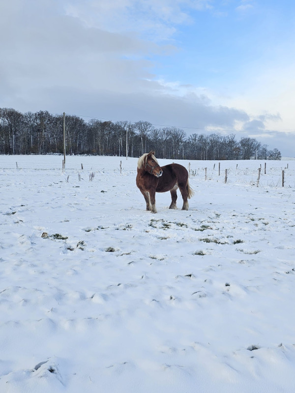 - l’hiver les stabulations sont ouvertes sur les terrasses. Et sorties au parc tous les jours SAUF intempéries (ex aujourd’hui sont sortis le matin de 9:00 à 12:30… les terrains sont gorgés de flotte !)