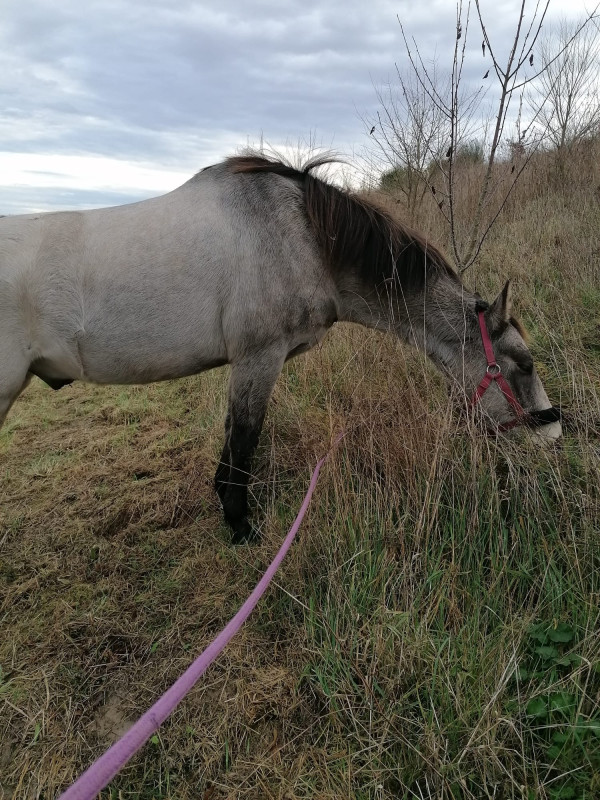 j'ai fait la promesse à V. et aux juments que je serai là jusqu'à la fin, jusqu'au bout et que je me donnerai corps et âme pour elles. Et j'ai tenu ma promesse. Pendant 13 ans, je me serai consacrée à elles, j'aurai donné tout ce que j'avais et j'aurai tenu bon. Nina nous a quitté en 2021 à l'âge de 33 ans et, déjà, j'ai senti en moi une faille qui n'attendait que de rompre. Alors, dans le souvenir de ma première jument, j'ai continué de donner à Golfite tous les soins, tout l'amour, tout le temps dont je disposais. Golfite nous a quitté le 01er Octobre 2024, à l'âge de 37 ans. Son décès sera le point final (et de non retour) de cette histoire qui aura 13 magnifiques années. Suite à cela, j'ai décidé de manière assurée de mettre Tartine en pension. J'ai refusé de reprendre des chevaux à la maison. Ca, c'était pour Nina et Golfite. Je me suis alors séparée et cette fin d'année 2024 tire un trait complet et en gras sur ma première vie, de propriétaire à la maison, pour laisser place à une nouvelle vie de propriétaire-cavalière en pension, avec un nouveau duo, avec L. et sa jument.