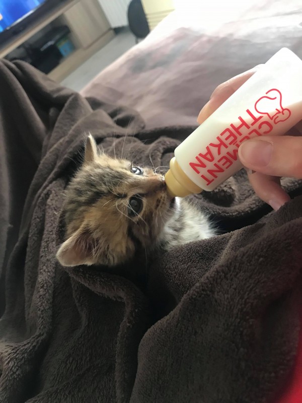 Nous l'avons trouvé dans un carton lors d'une balade elle était la seul survivante et d'après la véto elle était âgée d'à peine 15 jours, bien qu'en très mauvaise état je l'ai récupéré et j'ai décidé de la garder et de la soigner. Elle avait le coryza, des yeux en très mauvaise état, au point qu'elle est aujourd'hui aveugle d'un oeil et mal voyante de l'autre.