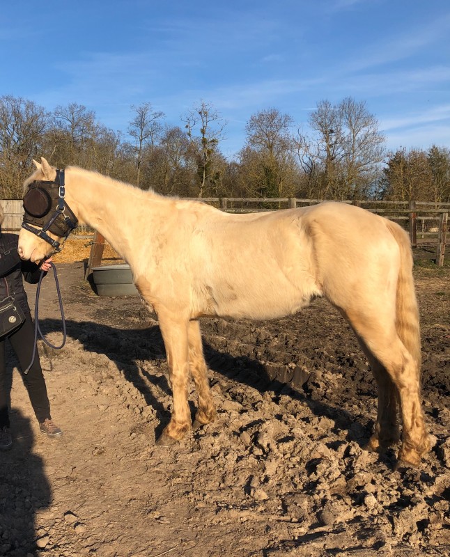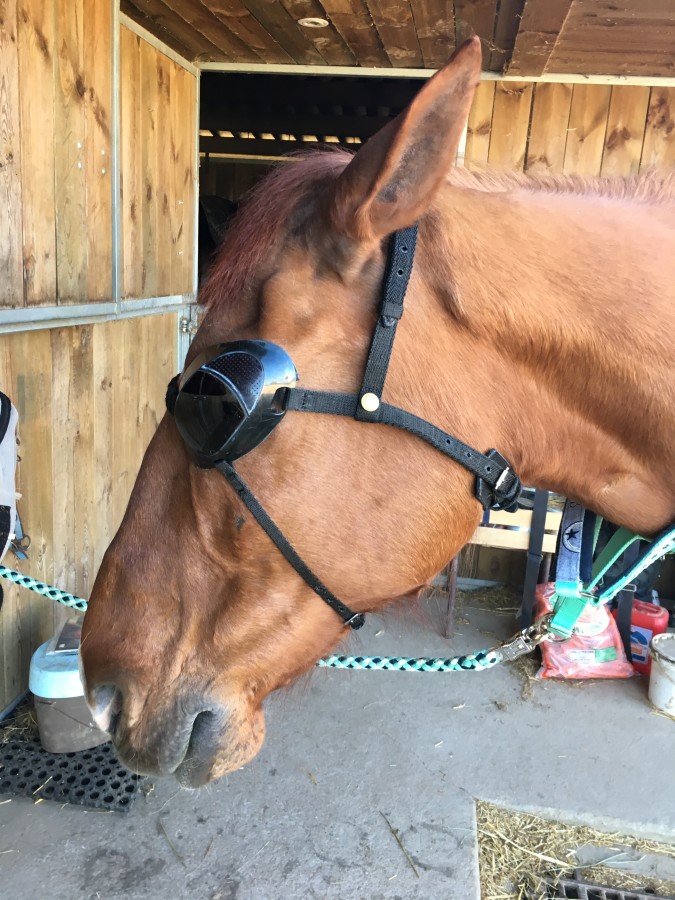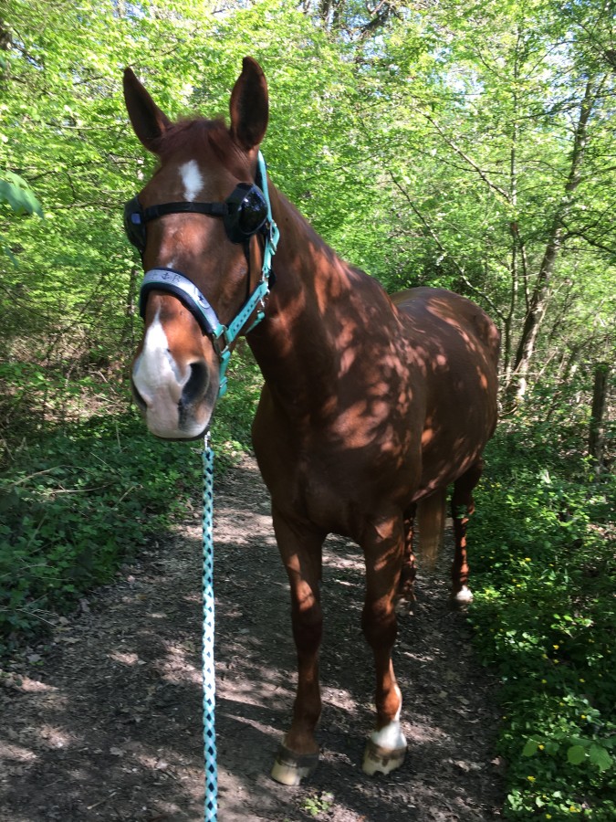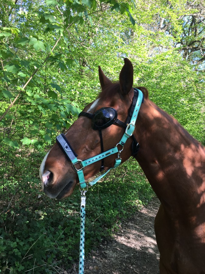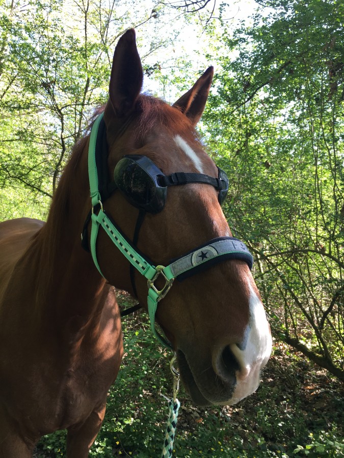 Je n’envisage pas qu’il passe sa vie au box, alors des la fin des soins il retournera au près la nuit et les jours où il fait gris... avec son masque .. et il sera monté de nouveau au club comme avant (c’est à dire raisonnablement) avec les lunettes equidiva.