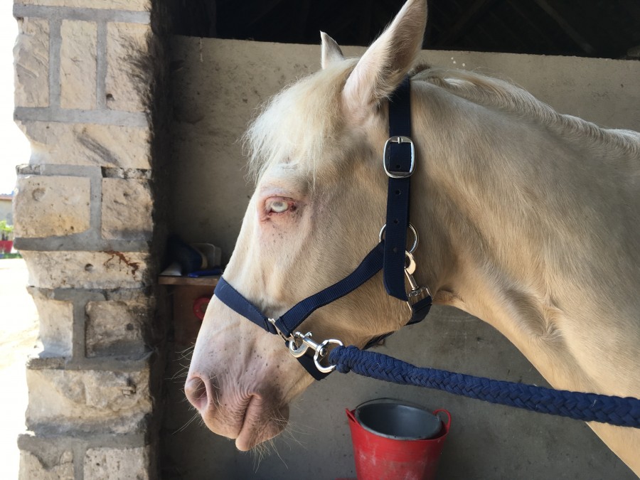 Mon poney Comet est atteint d’un carcinome épidermoïde des deux yeux.