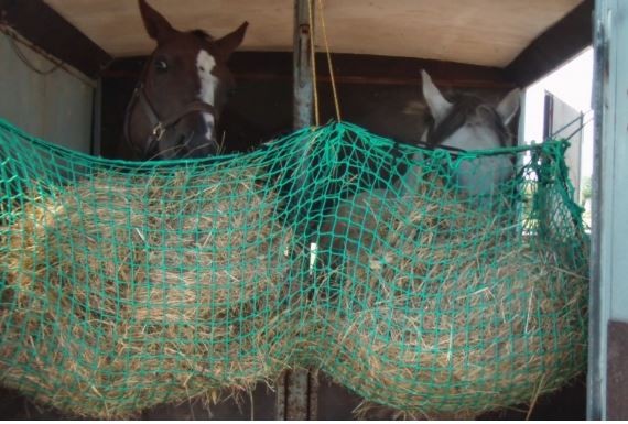 Voila cette année avec ma jument on va faire beaucoup de distance en van, je voulais lui mettre un filet a foin pour l'occuper pendant les trajets. Sauf que quand je lui en met, il y en a autant dans son intestin que par terre et ca salit tout le van. Est-ce que quelqu'un a deja bricoler un truc avec un drap ou autre devant ? Merci