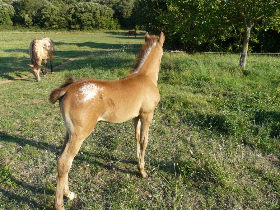 Quand au fait que ton étalon apaloosa né alezan puis devenu "blanc" produirait des isabelles et des palominos, je suis très dubitative