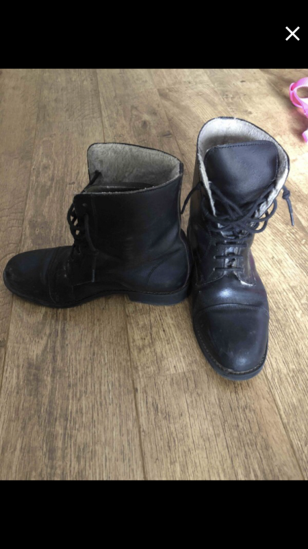 je vends mes chaussures d'équitation montante d'hiver fourer en laine de mouton et cuir sur l'extérieur prix 130 euros presque neuve en 39