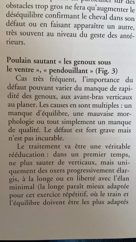 C'est Mécanique Equestre et Obstacle que tu as acheté ? Je l'ai et il me semble reconnaître ce passage qui m'avait aussi attiré le regard car mon vieux était aussi "pendant" sur les barres. Bon et on a jamais réussi à corriger ça...